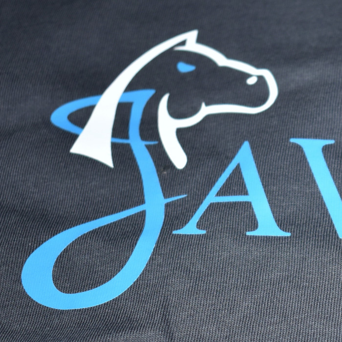 Grijze t-shirt met het logo van Javaro op de rug.